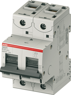 Artikel Leverancier: 2CCS892001R0635, Abb S 802 installatieautomaat, 2 polen, 2 polen (totaal), uitschakelkarakteristiek B, nom. (meet-)stroom 63A, nom. afschakelvermogen EN 60898 25kA, nom. afschakelvermogen IEC 60947-2 36kA, nevenapparaat mogelijk, breedte in module-eenheden (18mm) 3, bouwbreedte 53mm, inbouwdiepte 88.5mm,