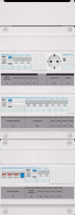 Artikelnummer leverancier: VKS323M-KTW , Hager VISION installatiekast, (hxbxd) 400x220x110mm, 3 fasen, beveiliging ALS + Installatieautomaat, totaal aantal groepen 9, 8 lichtgroepen, 9 groepen achter aardleksch, 3 aardlekschakelaars 30mA, 3 aardlekschakelaars 30mA 2, 4 polen hoofdschakelaar, hoofdschakelaar - nom. (meet-)stroo 40A,