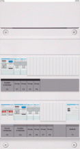 Artikelnummer leverancier: VKS320L-T, Hager installatiekast, (hxbxd) 400x220x110mm, 3 fasen, beveiliging ALS + Installatieautomaat, totaal aantal groepen 5, 5 lichtgroepen, 5 groepen achter aardleksch, 2 aardlekschakelaars 30mA, 2 aardlekschakelaars 30mA 2, 4 polen hoofdschakelaar, hoofdschakelaar - nom. (meet-)stroo 40A,